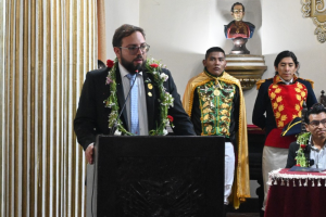 Por ese motivo, el Secretario Germán López, encargado de asuntos culturales de la Embajada, se trasladó a dicha ciudad para celebrar los actos públicos de conmemoración de tan importante jornada, junto con el Gobernador de Potosí, Marco Antonio Copa Gutiérrez.